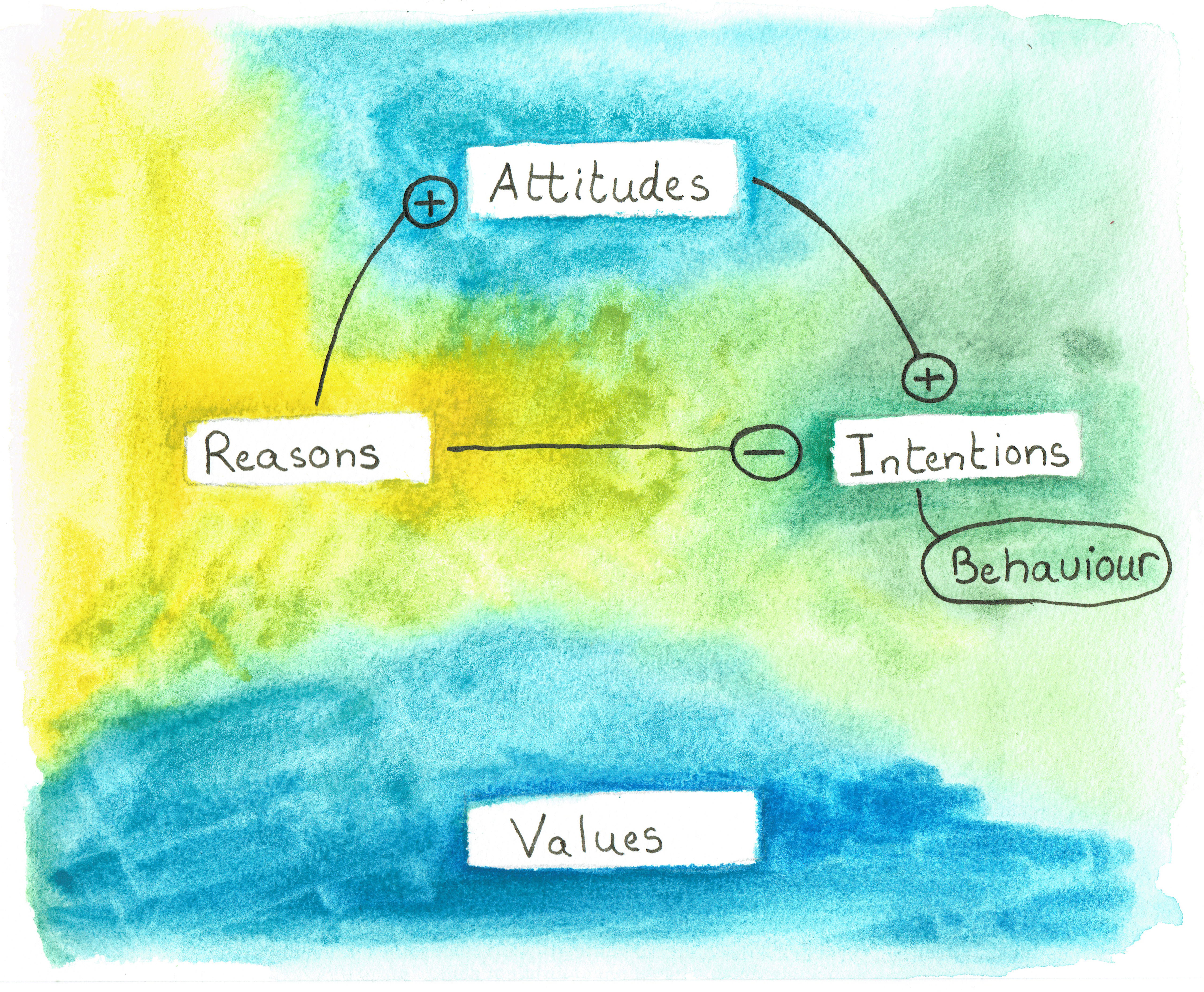 Several studies have shown a link between positive (+) attitudes and whether or not a person engages in sustainable behaviour.