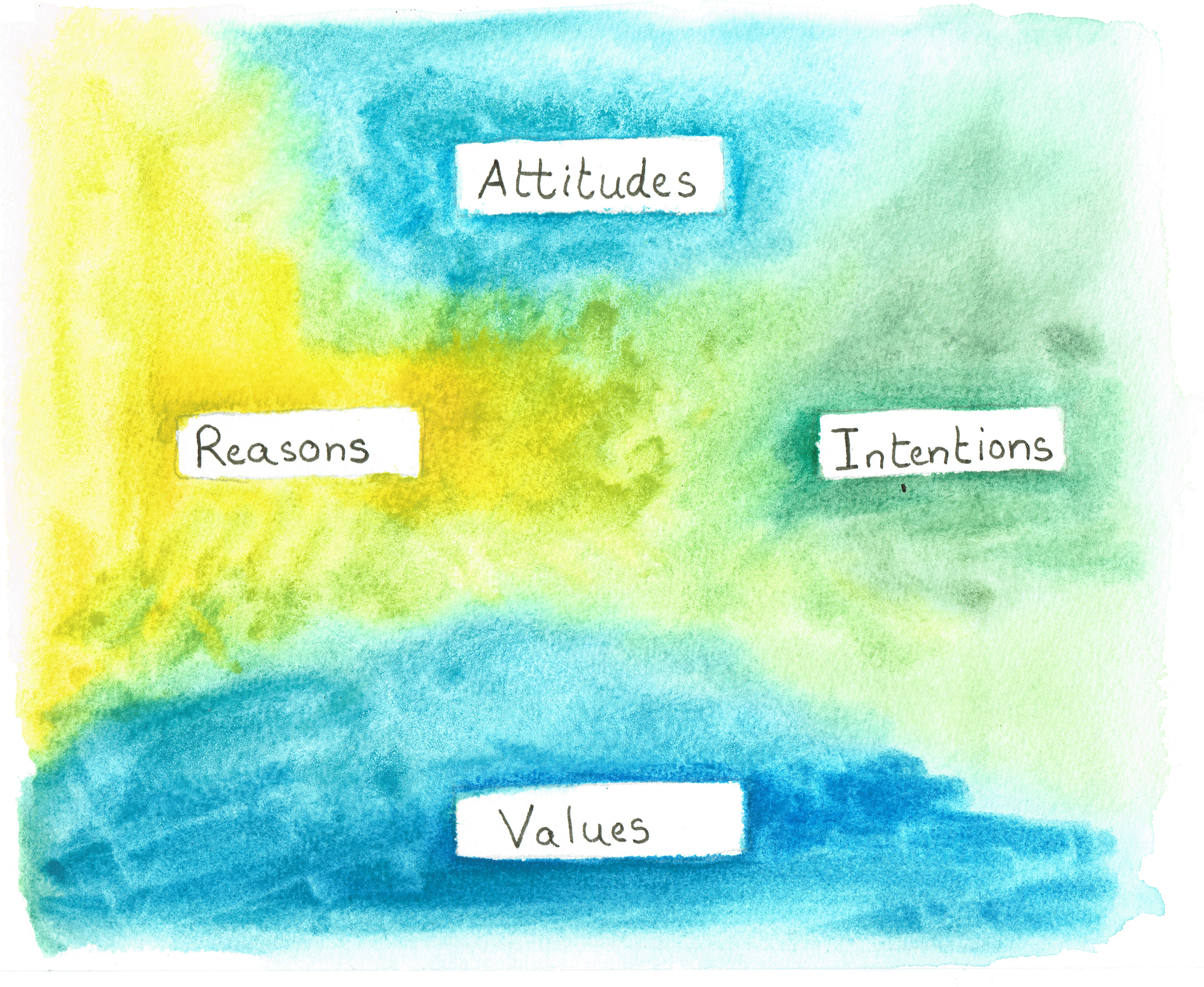 Then we come to “reasons”. These are specific factors that people use to explain their behaviour and justify their decisions. These are specific to the individual and situation.